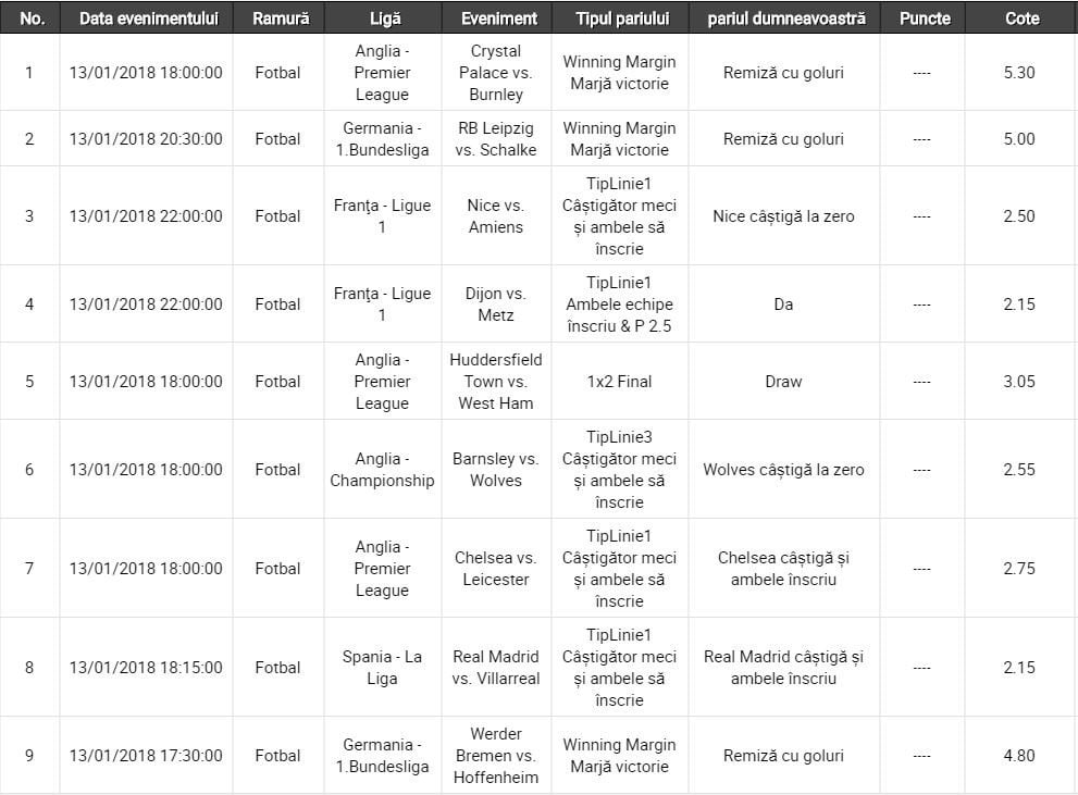 - zeci de pariuri zilnice adăugate de utilizatori