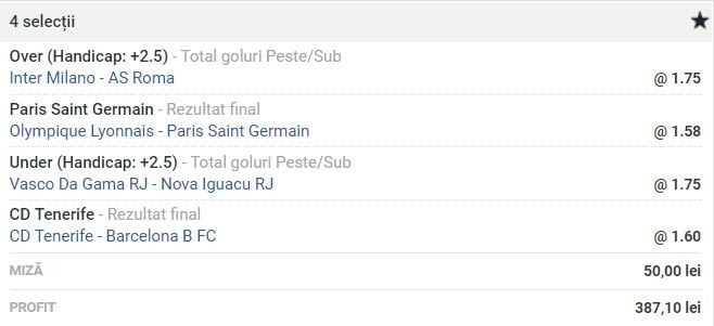 Am plasat un bilet în care am căutat să aleg 4 meciuri astfel:
