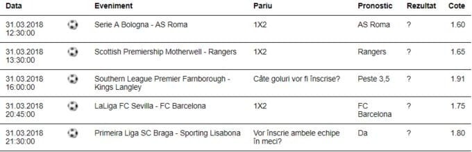 Băieți, pentru azi am jucat un bilet de tip challenge în care am căutat să găsesc niște meciuri cu valoare decentă. Am selectat 3 soliști pe oaspeți, un GG și un over și iată că ne-a ieșit un bilet de cotă aproape 16, foarte interesant.