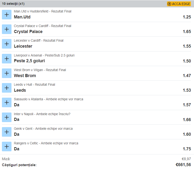 Eu am jucat un bilet de final de an compus din 10 meciuri care se desfășoară de Boxing Day și pe 29 decembrie. Cine știe, poate dăm un ultim tun în 2018, așa cum am mai dat de atâtea ori.